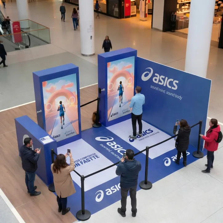 Esta solución transforma el stand en un punto dinámico de entretenimiento e interacción.